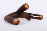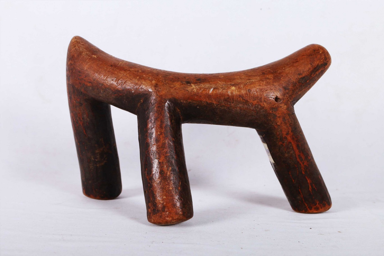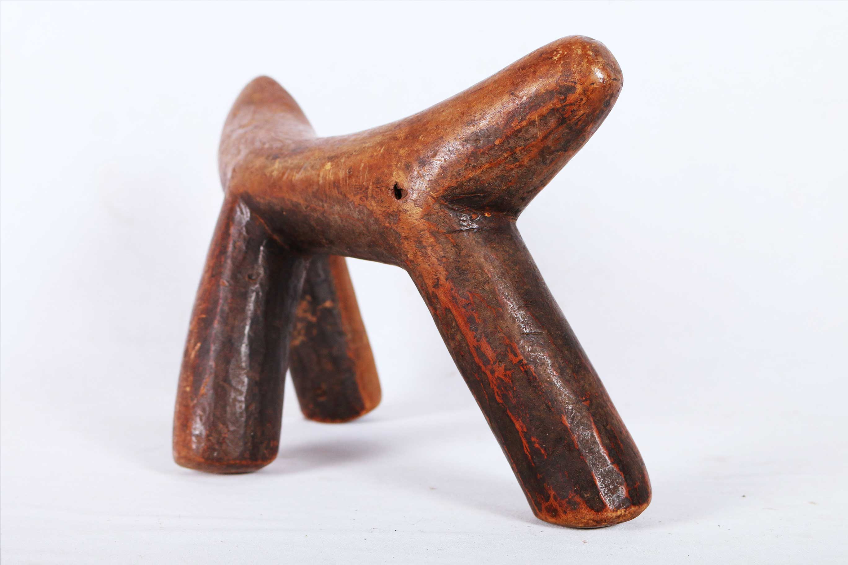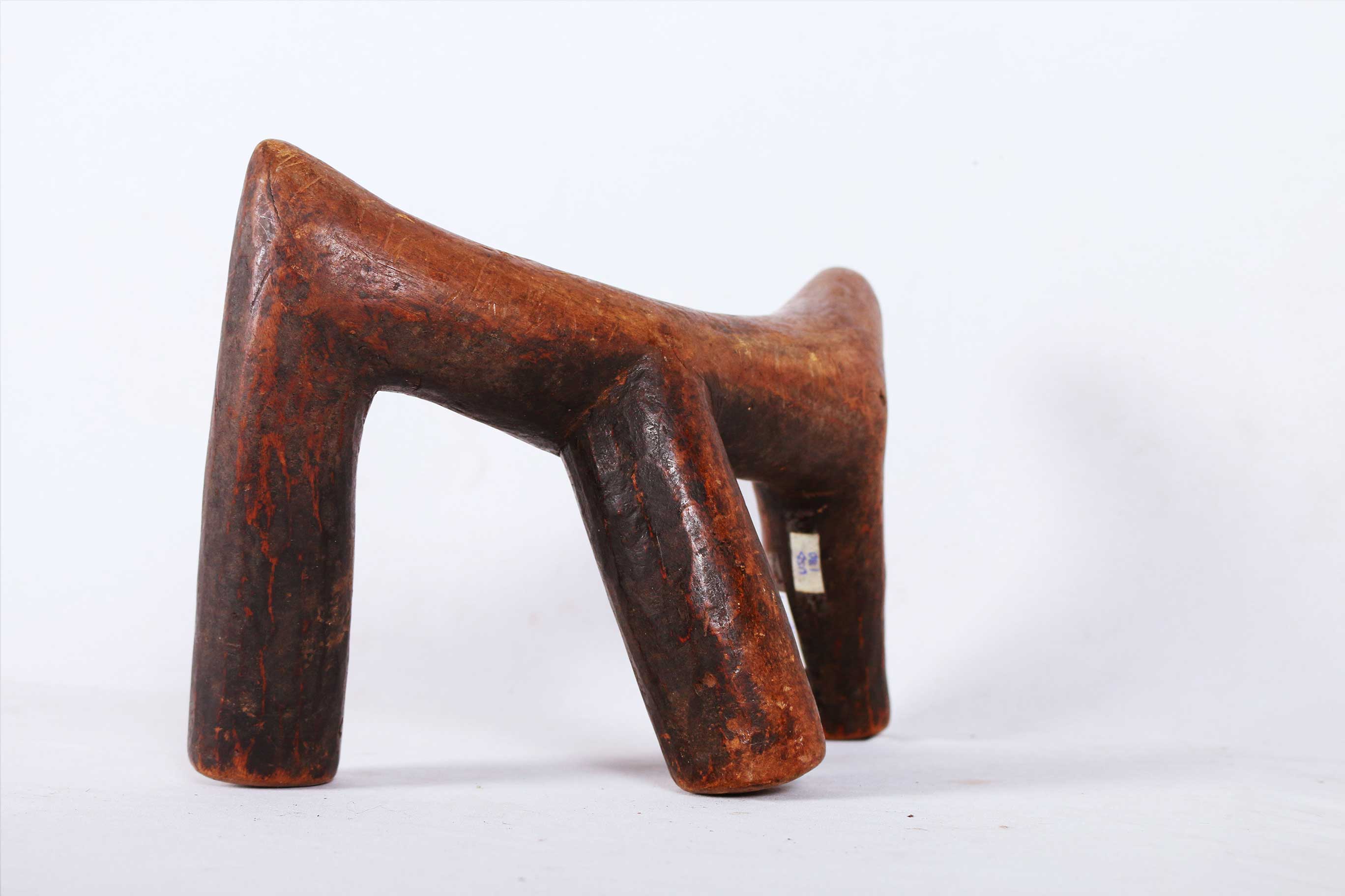 The nomadic lifestyle of the pastoralist Turkana peoples of northwestern Kenya and their custom of wearing elaborate coiffures made the use of light, portable headrests a necessity. The following headrest has a dark brown patina and shows good signs of age and usage.