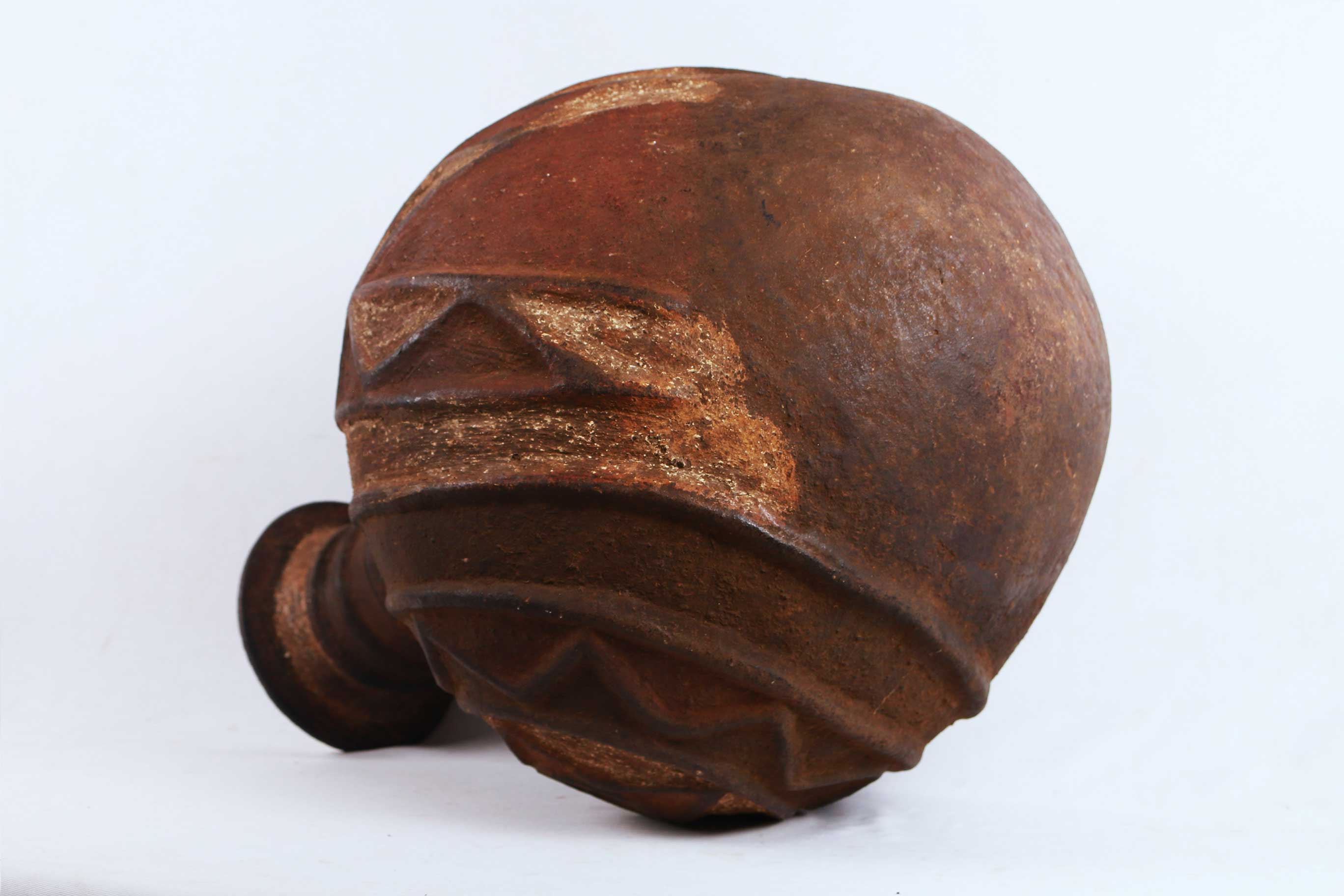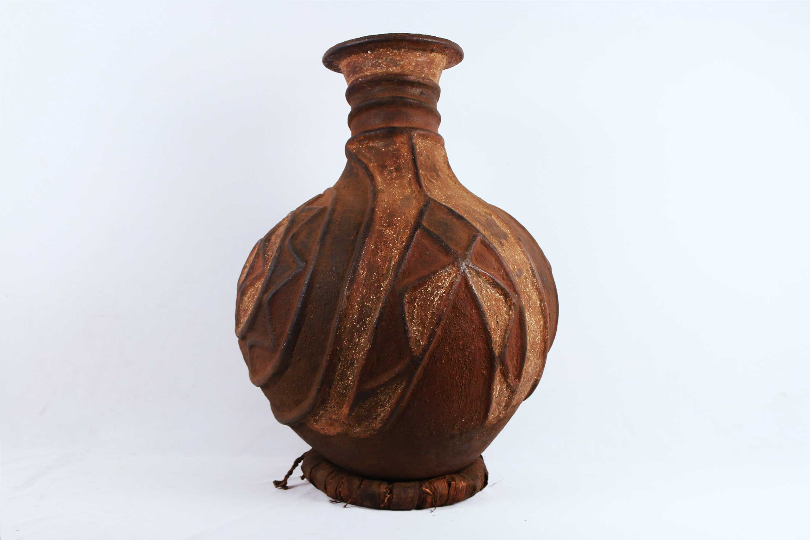 Pots were used in rural communities for carrying water, the mass storage of food and milk, cooking food, serving and drinking beer. Built for an entirely functional use the vessels were easily and cheaply made as long as clay was locally available. Sculpted vessels expressing surface design were vehicles for addressing the metaphysical needs of the community. They could be fashioned with representational spirit forms and manipulations, or incised with designs, scribbles and scouring.These pots were often kept in their own confined, custom-built spaces where they were tended and consulted for ritualistic purposes. Some were deliberately broken during ritual ceremonies, while some have endured and been maintained for many generations. Currently, some traditions have been abandoned and the practice of making ritualistic vessels no longer exists in many communities.