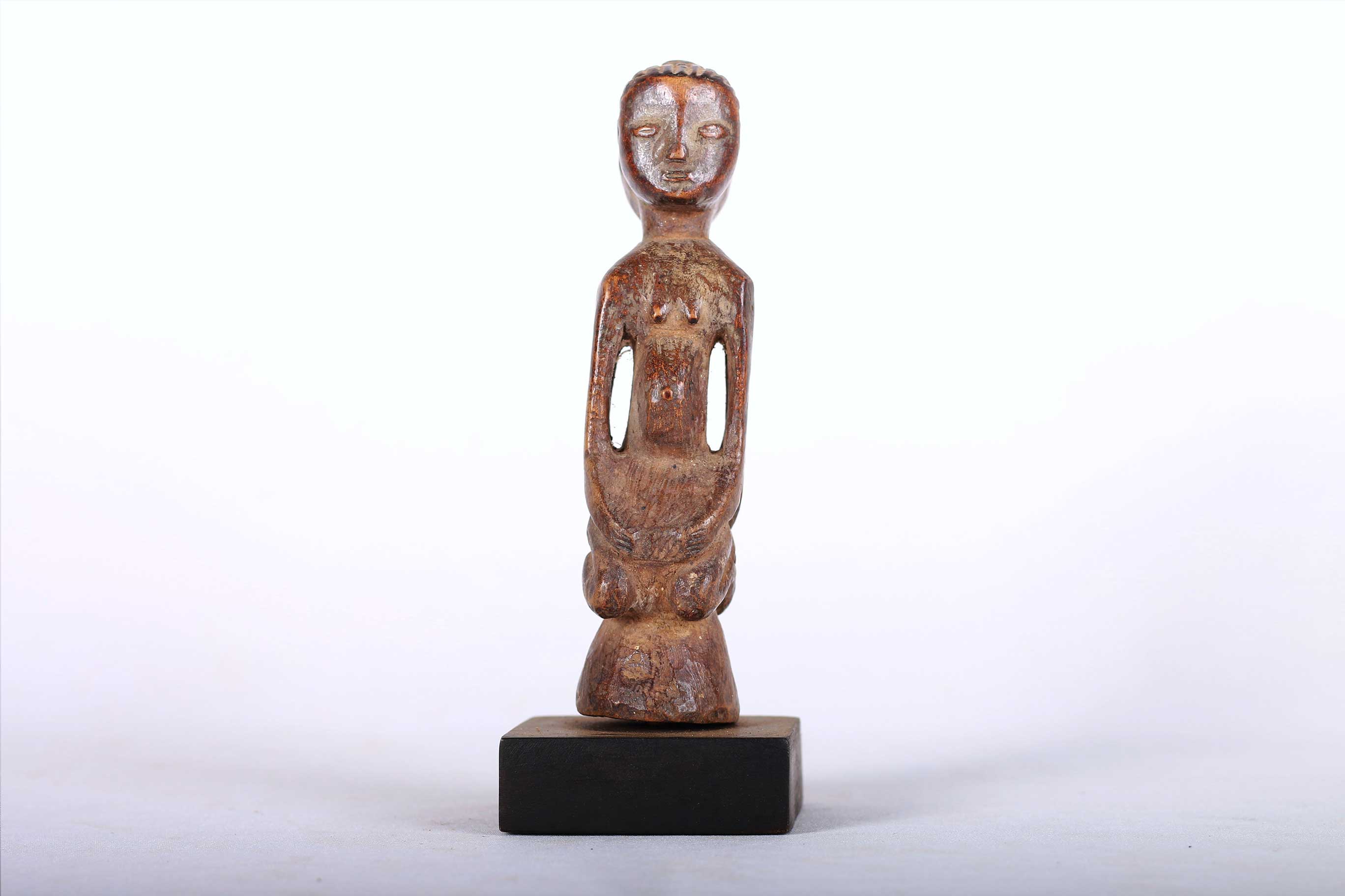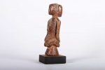 Such Yombe female Phemba statues are used in divinatory practices or associated with fertility rites. All Phemba figures represent women in seated, cross-legged, or kneeling postures. Women are an important Yombe symbol because they are considered to be a nurturing force. Also considered to be seers and guardians of the spirit. The example here has a brown patina, visible signs of old age and natural abrasion.