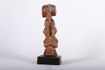 This is a beautiful wooden statue from the Yombe people. The Yombe reside mainly in the Democratic Republic of Congo Zambia and Angola. Yombe art forms are greatly influenced by the Kongo kingdom. They are artistically prolific and famous for carving the Nkisi and Phemba statues. Art forms of Yombe included maternity figures, seated kings, objects of prestige, and nail and mirror fetishes.