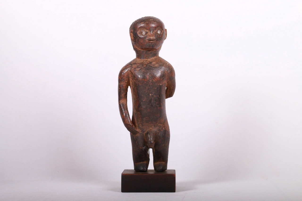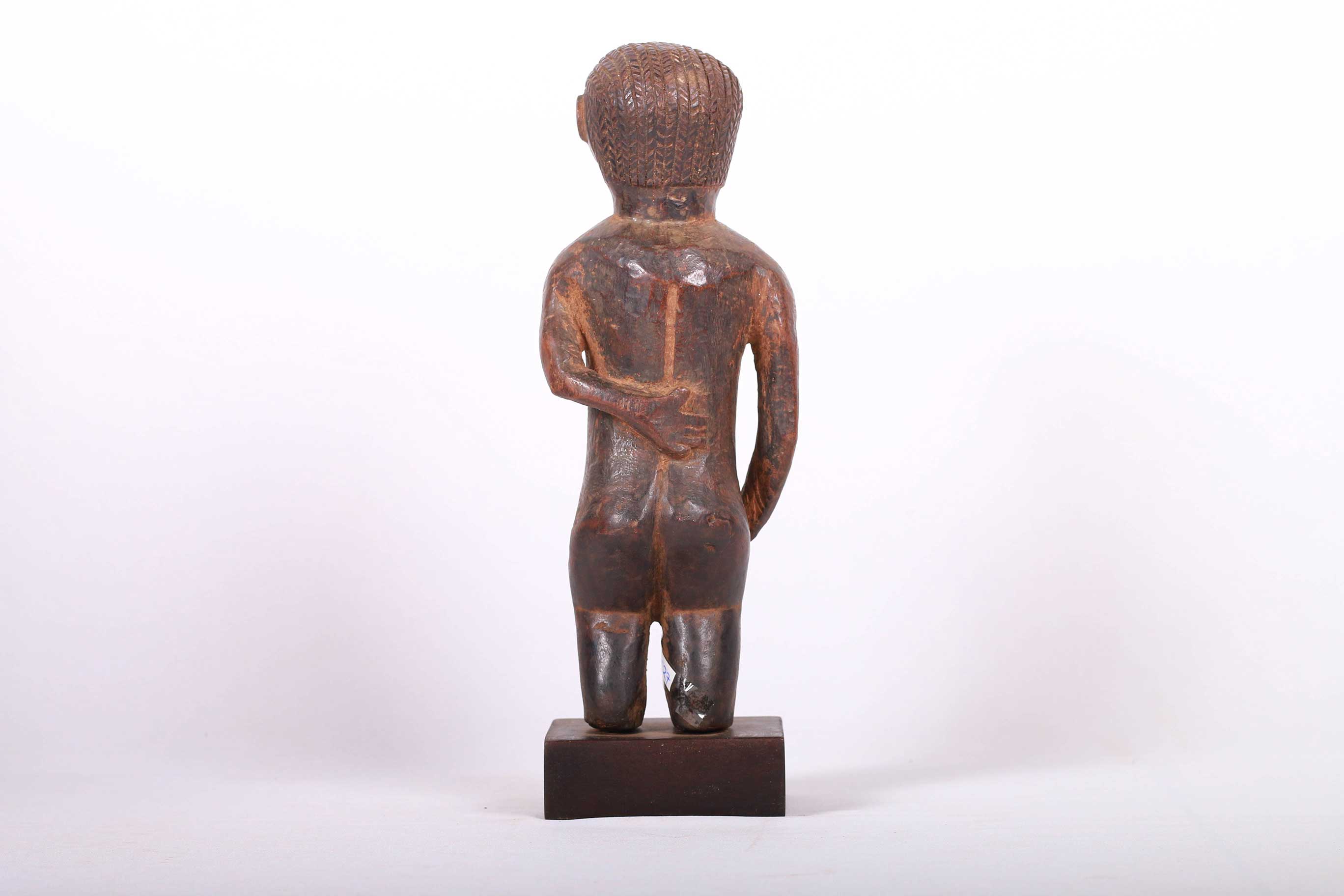 The Zande are found in the African countries of South Sudan, the Central African Republic, and the Northern Democratic Republic of Congo. Zande sculptures are often representations of ancestors Some of the Zande sculptures are associated with the highest rank of the secret Mani society which protects society members from the dangers of illness, hunting, and evil spirits. The following statue has a dark patina and looks considerably old.
