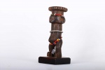 The Zande are found in the northern part of the Democratic Republic of the Congo, along the banks of the Uele River. Zande sculptures are often representations of ancestors Some of the Zande sculptures are associated with the highest rank of the secret Mani society which protects society members from the dangers of illness, hunting, and evil spirits. The following statue has a reddish patina and looks considerably old.