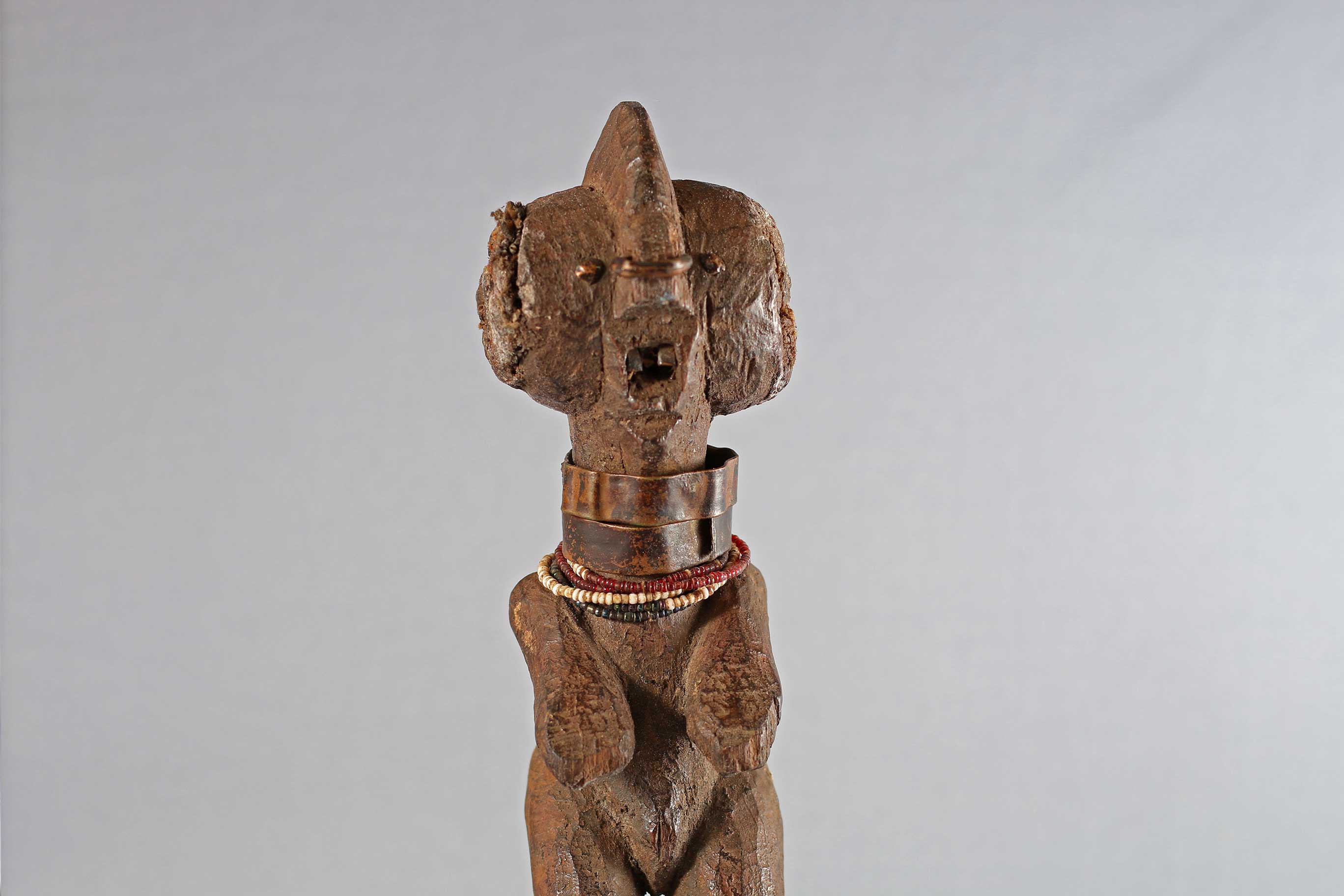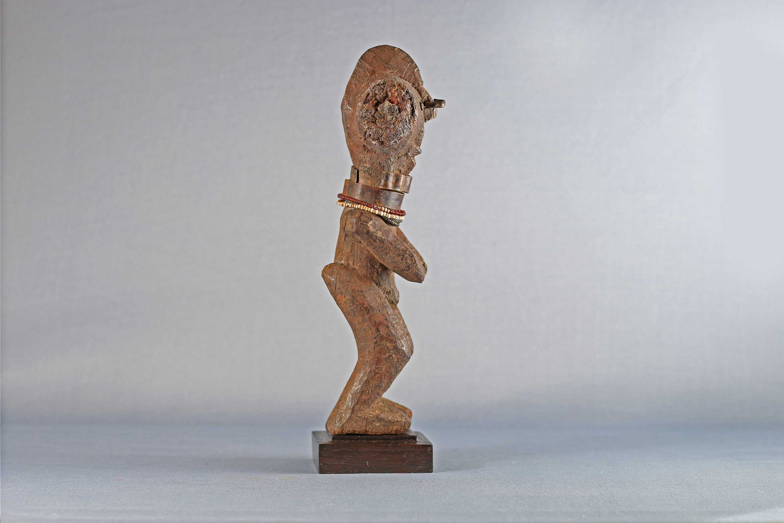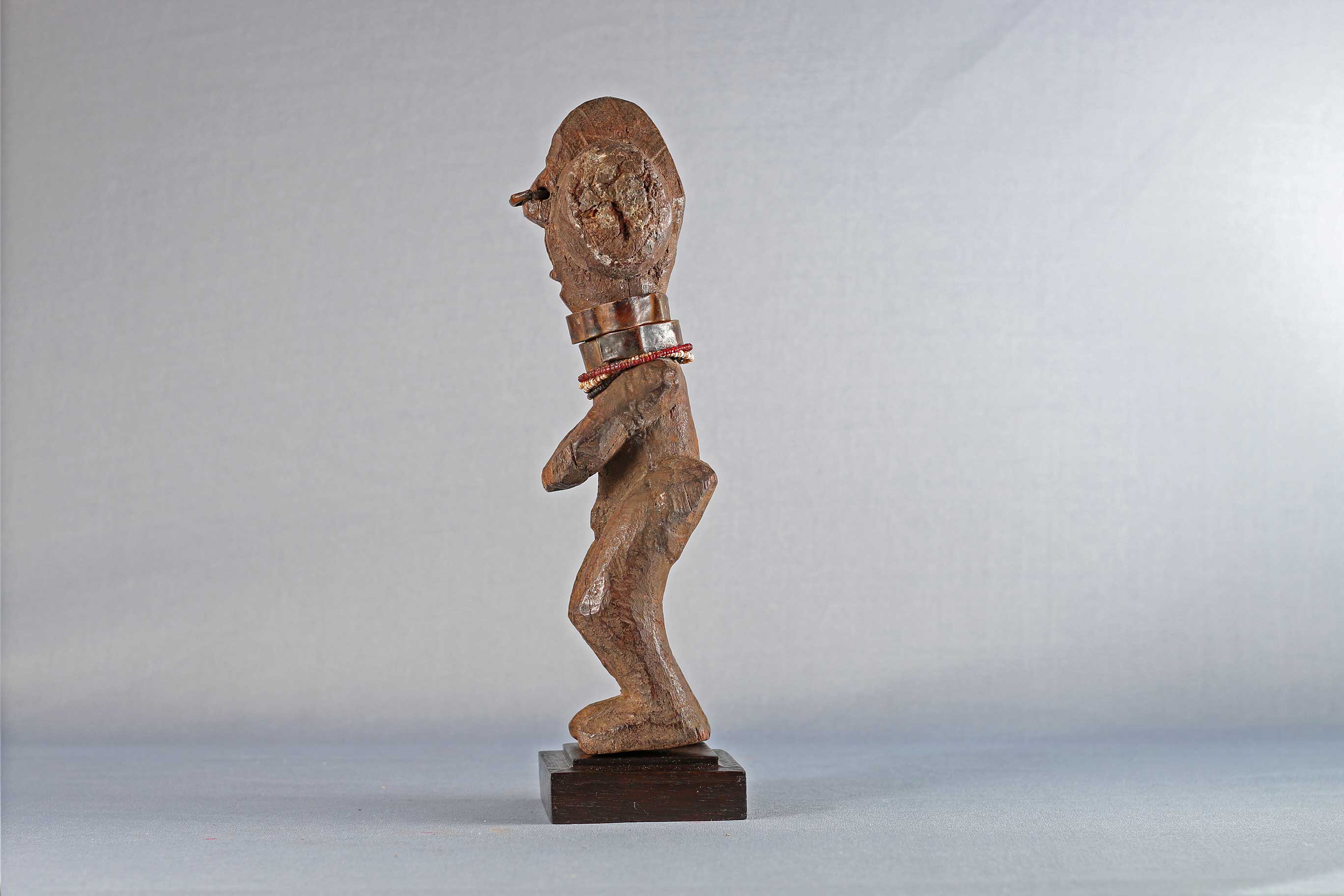The Zande are found in the northern part of the Democratic Republic of the Congo, along the banks of the Uele River. Zande sculptures are often representations of ancestors Some of the Zande sculptures are associated with the highest rank of the secret Mani society which protects society members from the dangers of illness, hunting, and evil spirits. The following statue has a brown patina and looks considerably old.