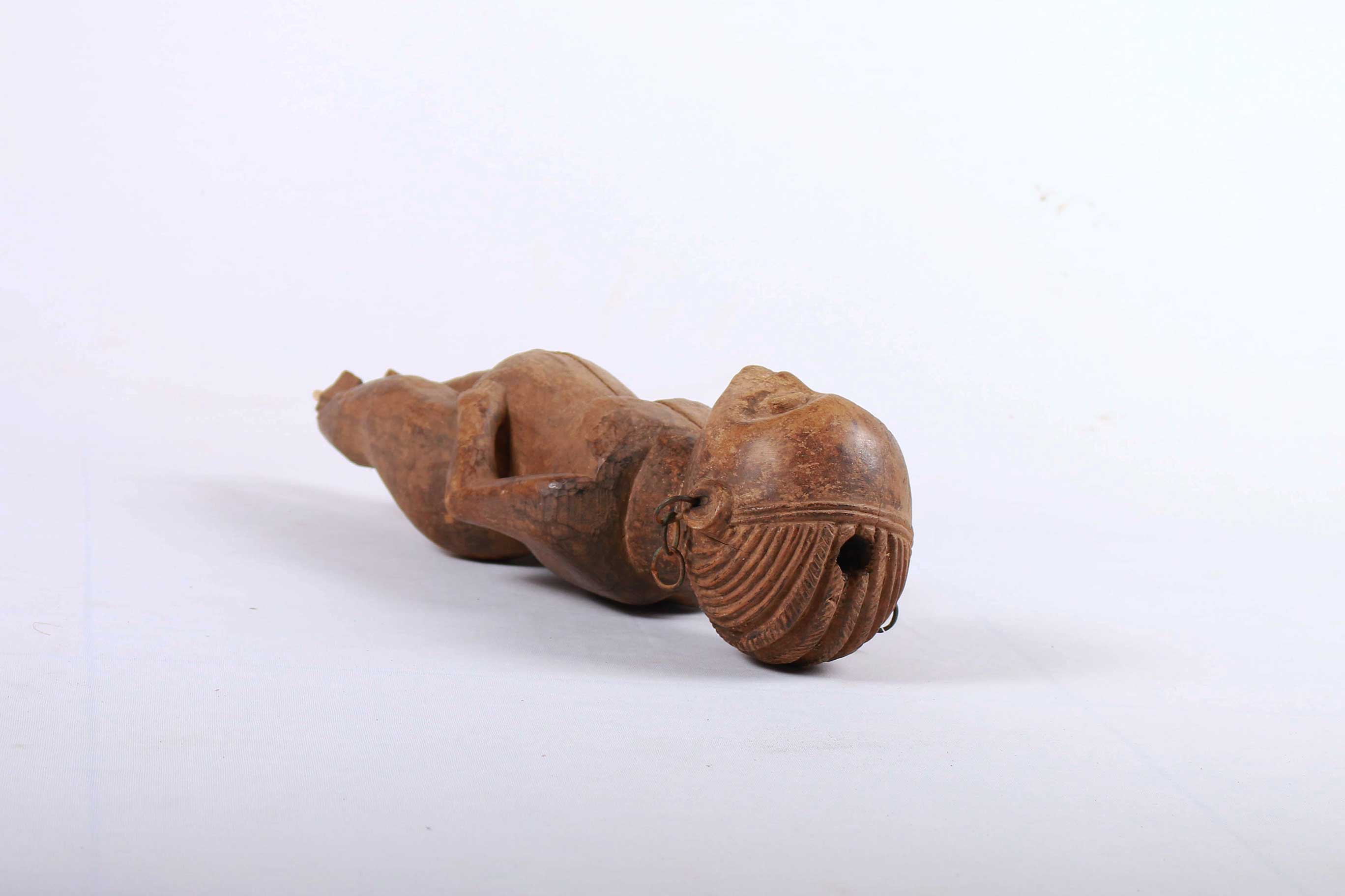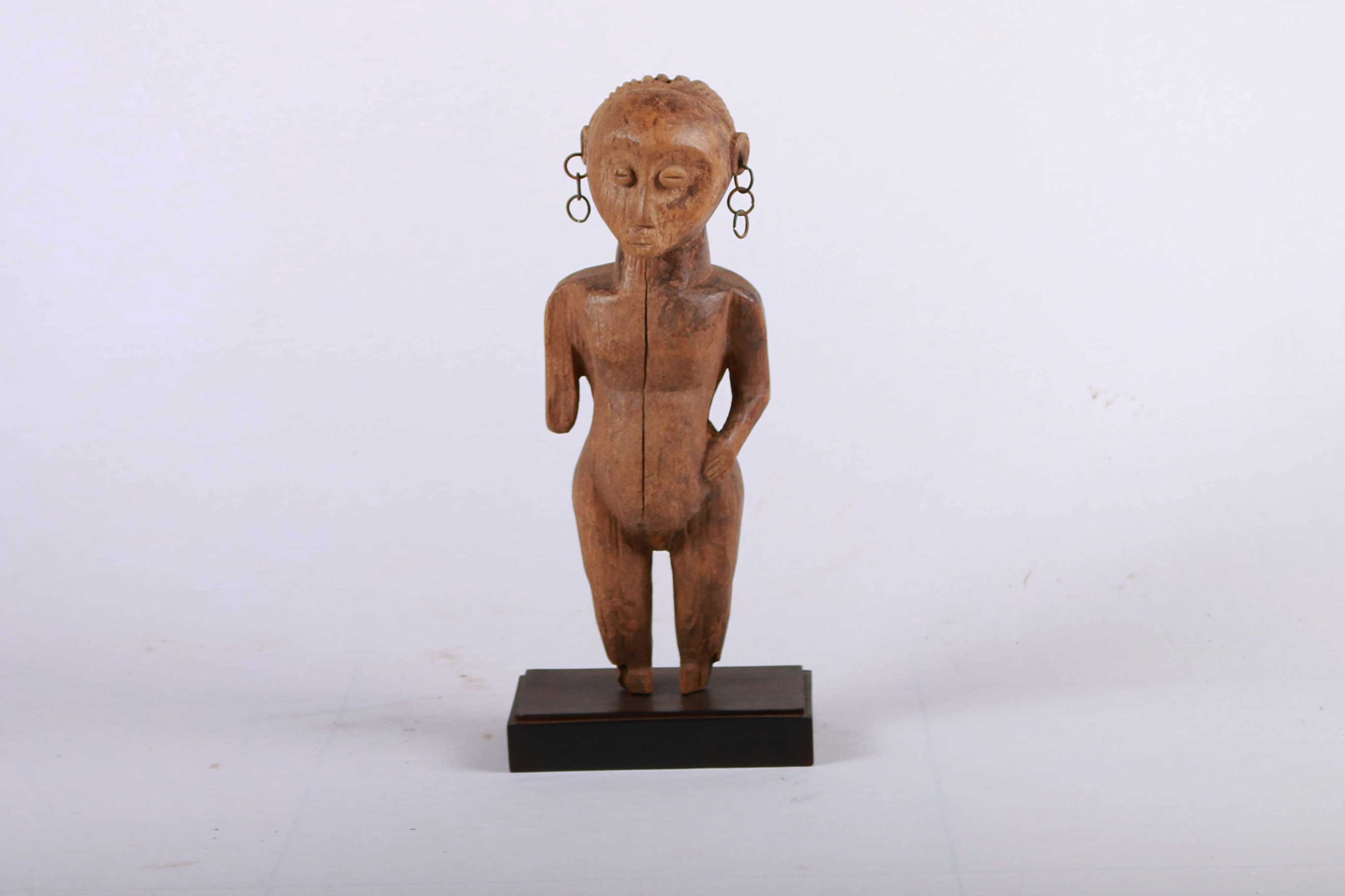 The Zande are found in the African countries of South Sudan, the Central African Republic, and the Northern Democratic Republic of Congo. Zande sculptures are often representations of ancestors Some of the Zande sculptures are associated with the highest rank of the secret Mani society which protects society members from the dangers of illness, hunting, and evil spirits. The following statue has a dark patina and looks considerably old.