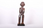 The Zande are found in the northern part of the Democratic Republic of the Congo, along the banks of the Uele River. Zande sculptures are often representations of ancestors Some of the Zande sculptures are associated with the highest rank of the secret Mani society which protects society members from the dangers of illness, hunting, and evil spirits. The following statue has a black patina and looks considerably old.
