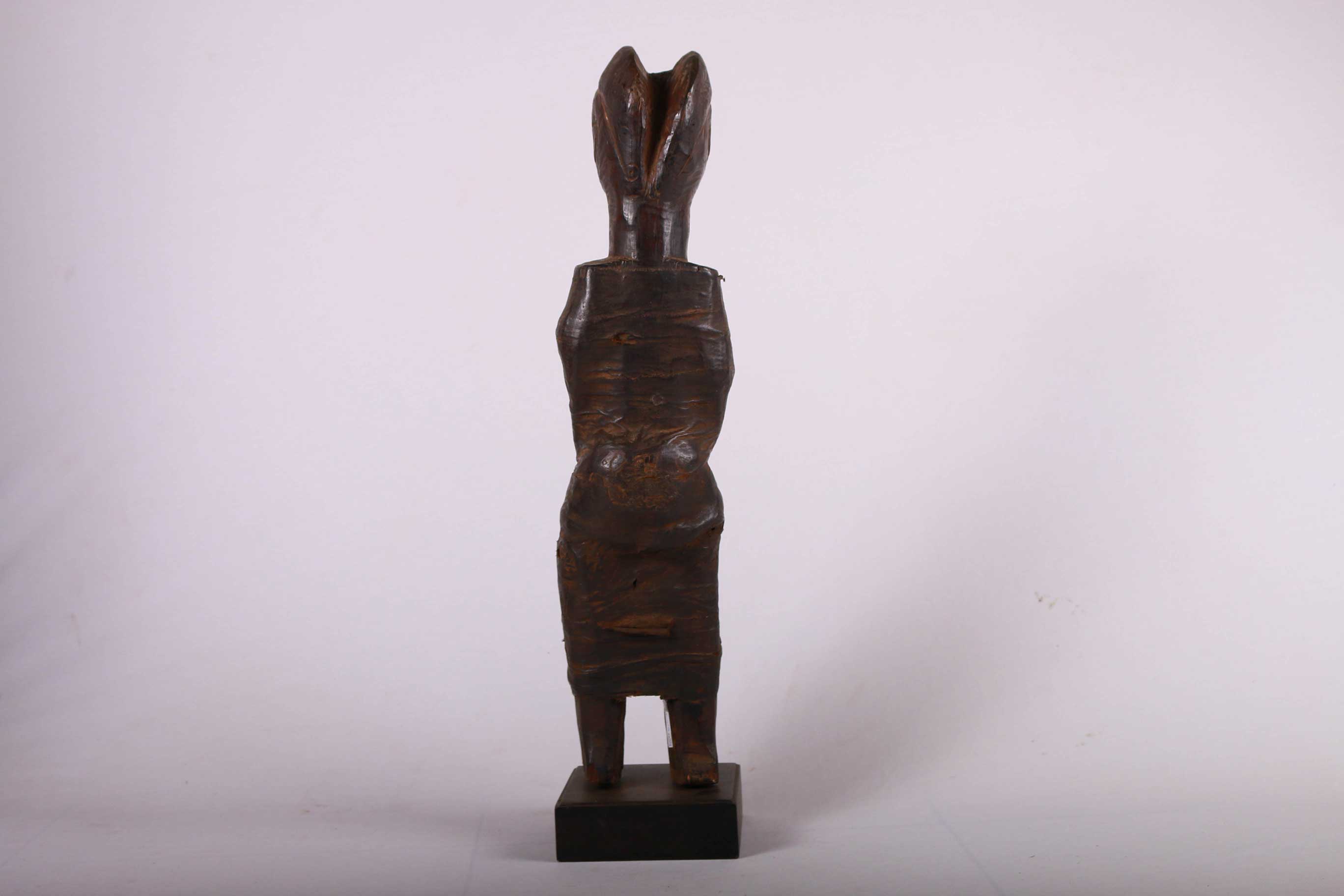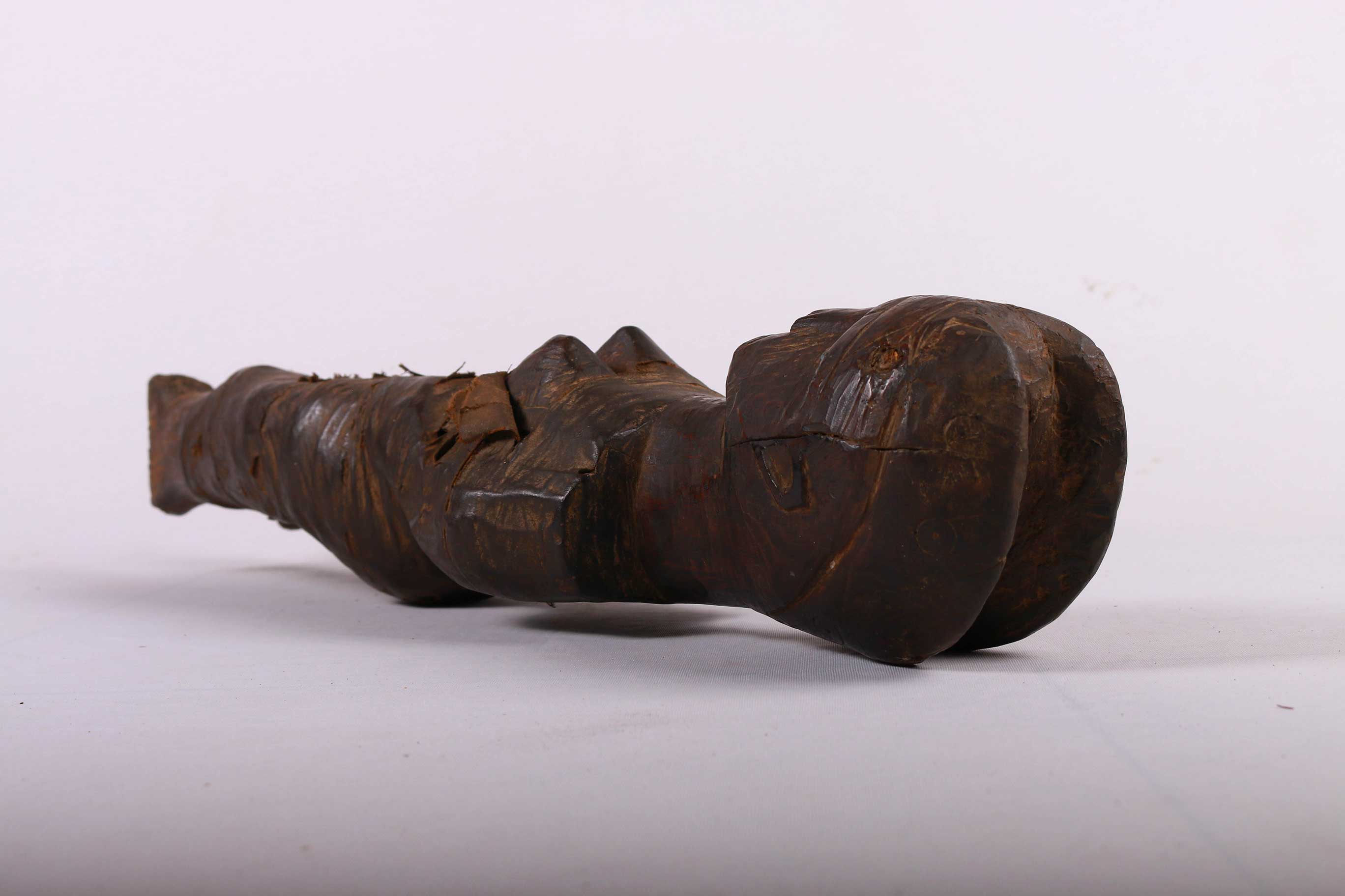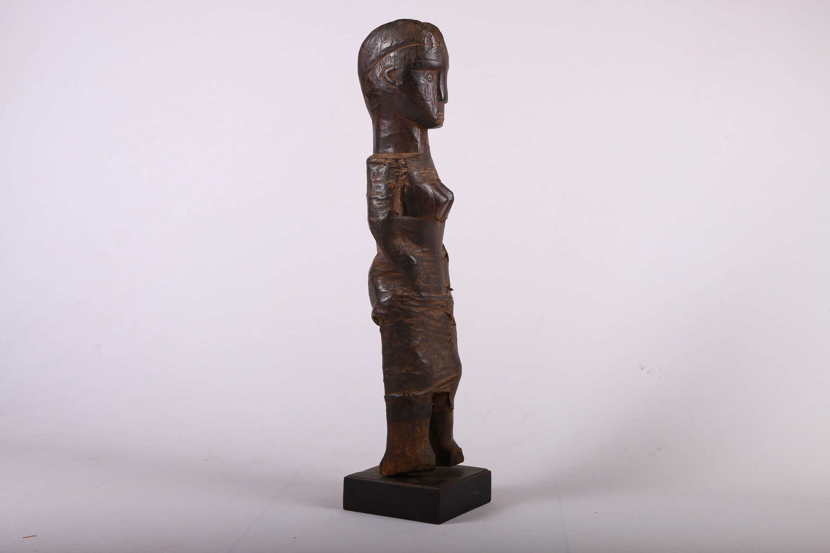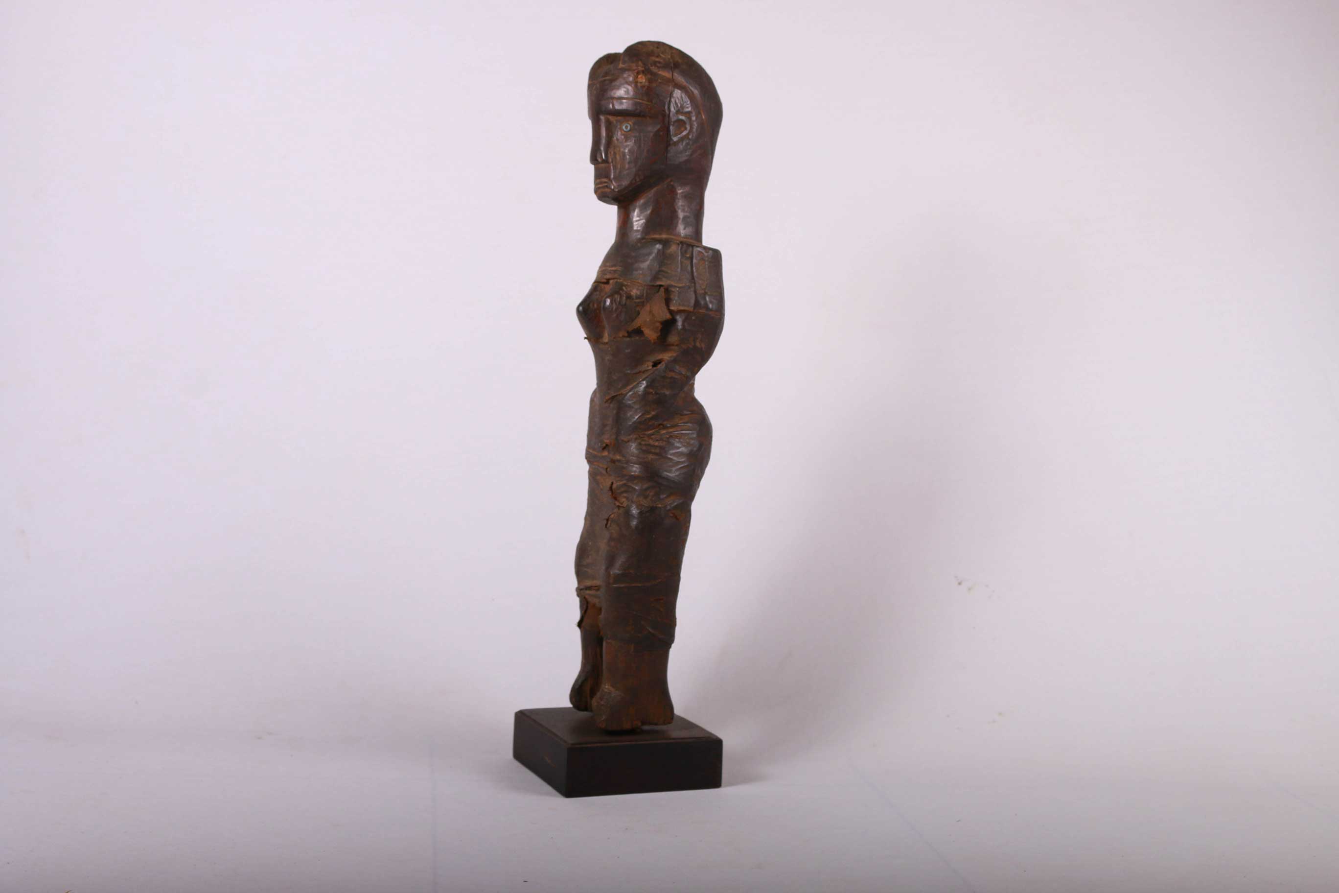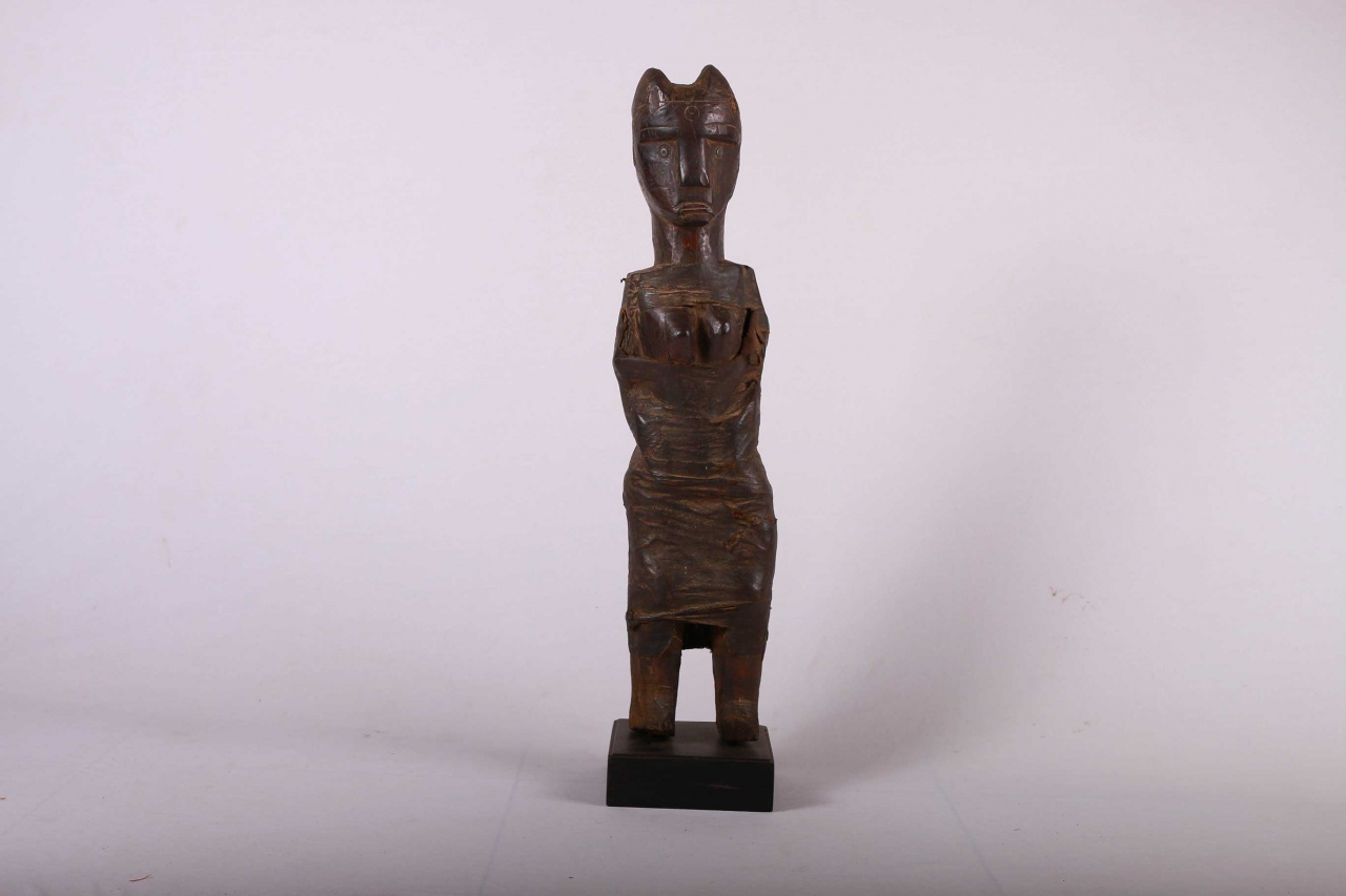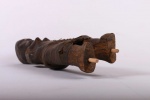 The Zigua are a Bantu ethnic group found in the eastern part of Tanzania East Africa. The Zigua is best known in the art world for their rare “mummy” fetishes. These are were powerful figures from the Zigua people in Tanzania and were revered for their healing powers. This is a rare Zigua tribal female mummy fetish from Tanzania believed to protect the owner from spiritual powers, it is carved in hardwood with a dark patina, interesting features and shows visible signs of age and usage.