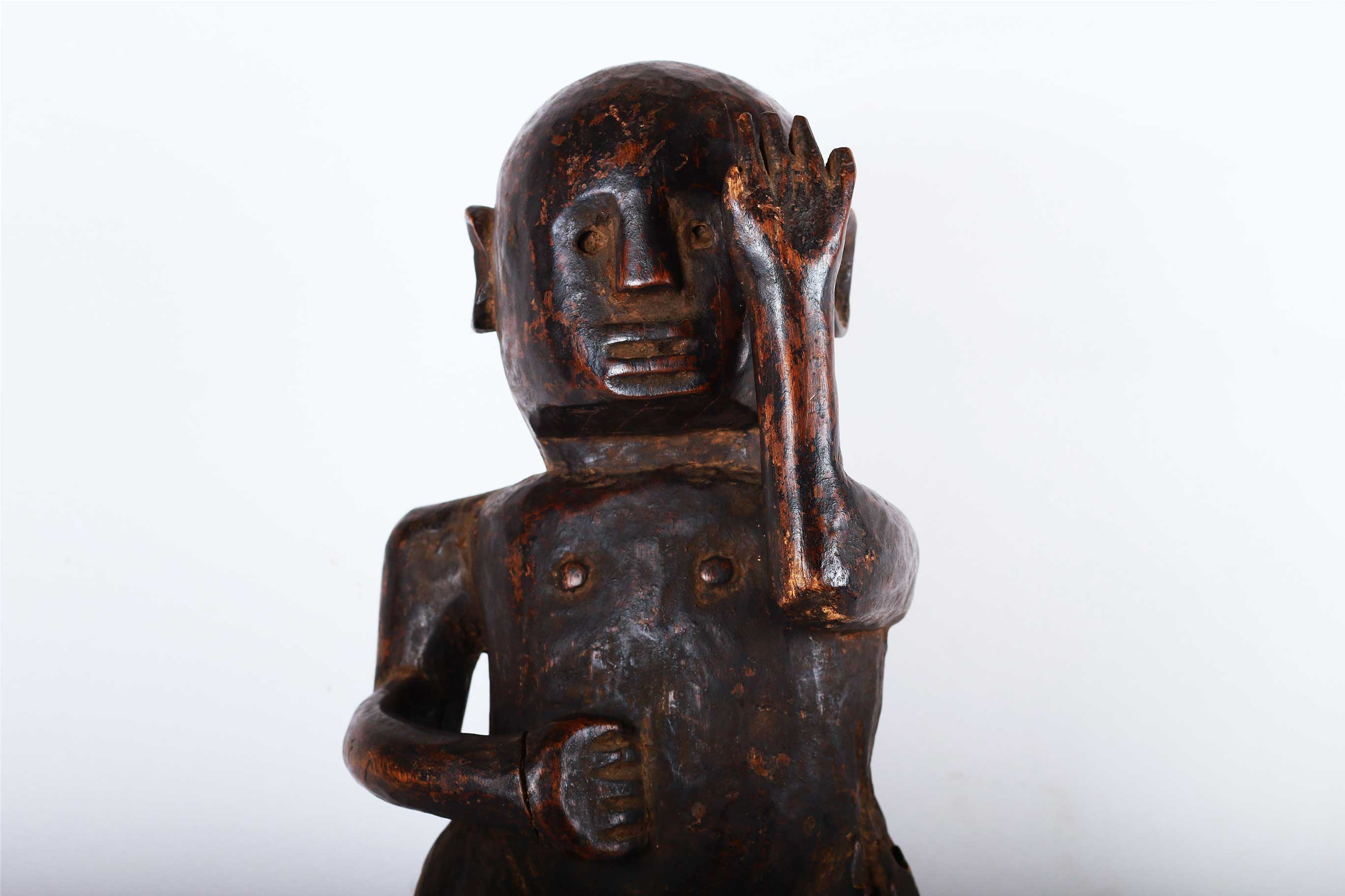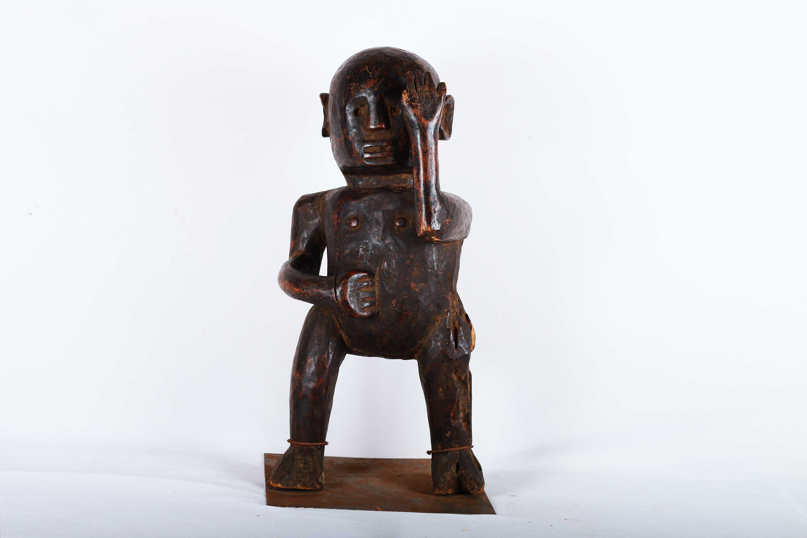 The Zigua is an ethnic group found in Tanzania. The Zigua is best known in the art world for their rare “mummy” fetishes. These are were powerful figures from the Zigua people in Tanzania and were revered for their healing powers. The following sculpture has a black patina it shows visible signs of age and usage.