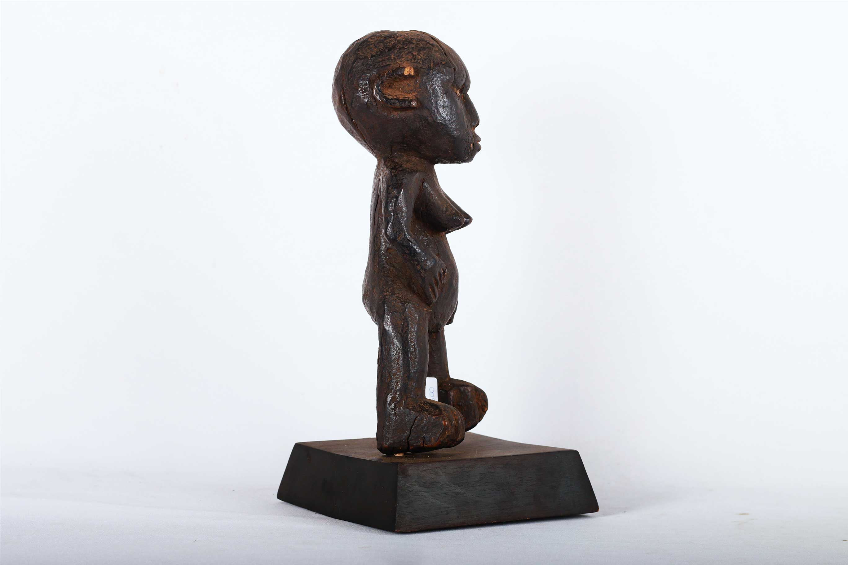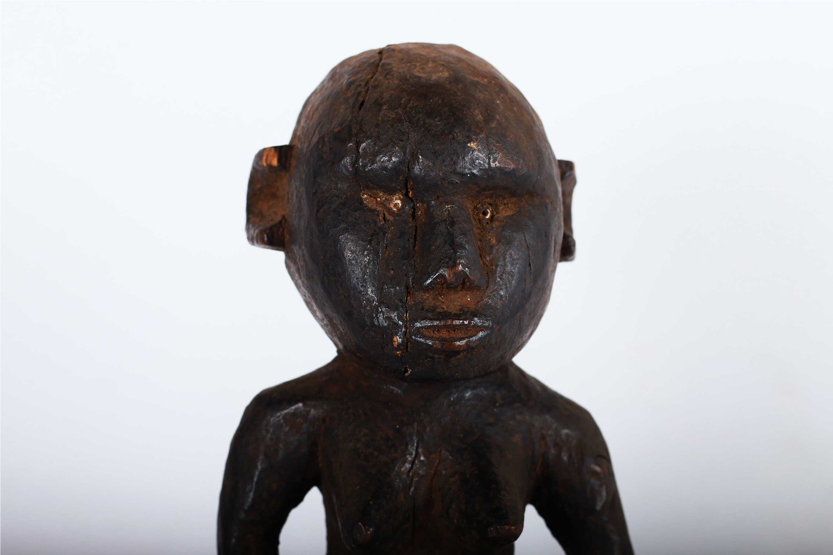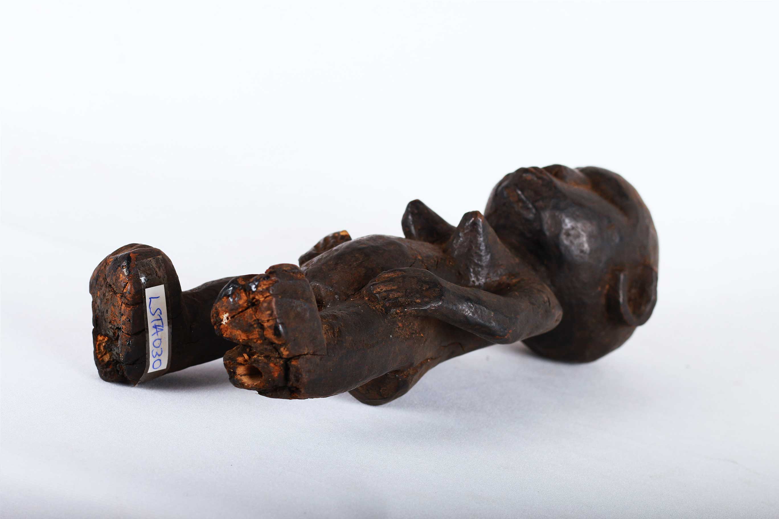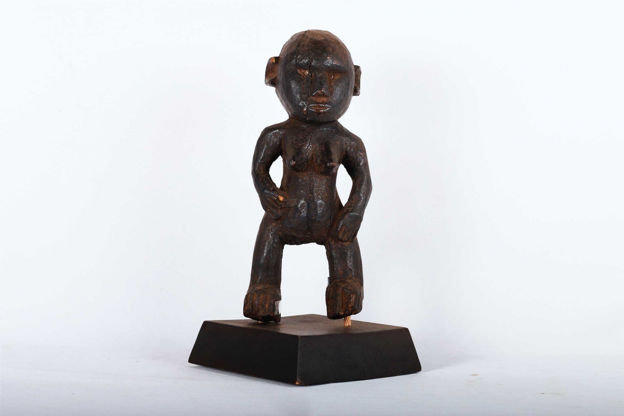 The Zigua is an ethnic group found in Tanzania. The Zigua is best known in the art world for their rare “mummy” fetishes. These are were powerful figures from the Zigua people in Tanzania and were revered for their healing powers. The following sculpture has a black patina with slight damage around the feet, it shows visible signs 0f age and usage.
